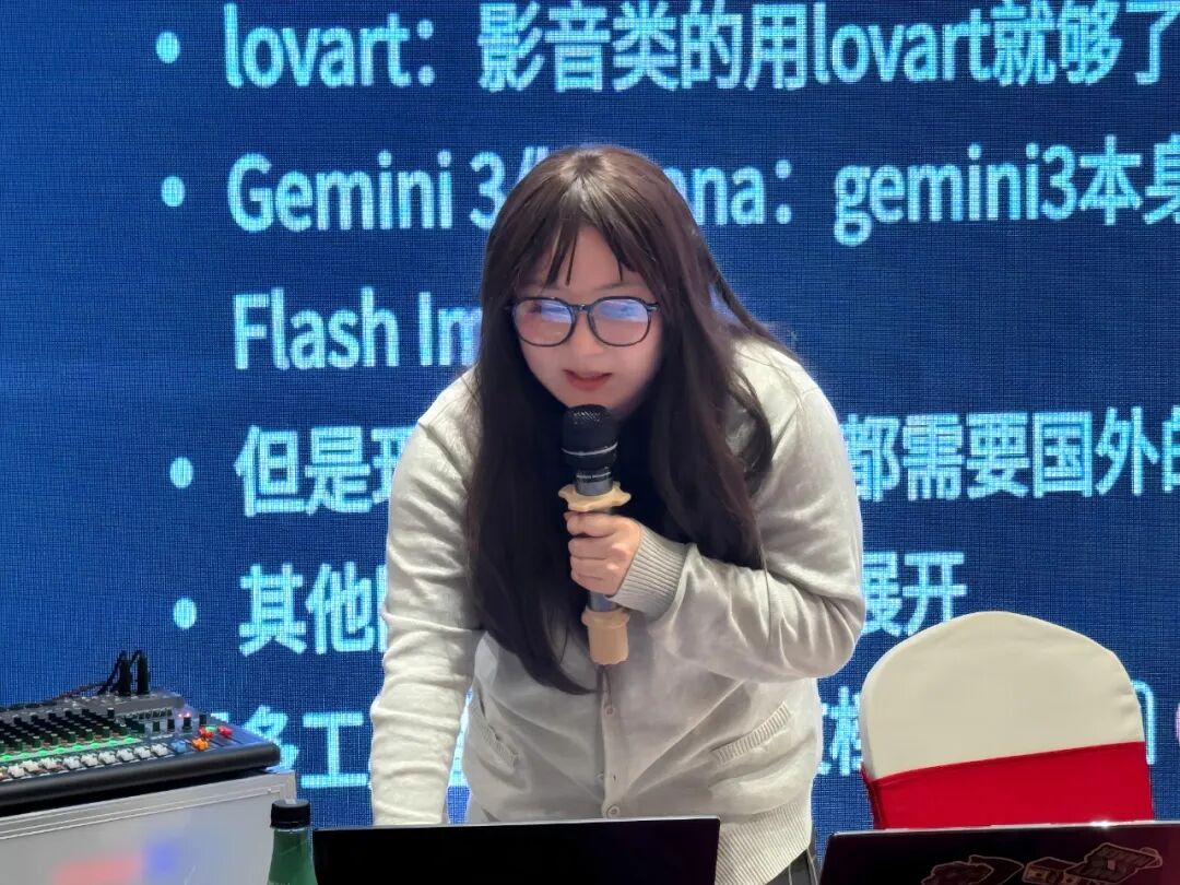 活动邀请了小红书AI领域讲师阿星老师,她围绕“爆款内容生产”,搭建了从基础到高阶的课程体系。阿星老师通过电商、社交媒体、品牌宣传等真实案例,讲解了AI在文案生成、视觉设计、数据分析中的作用;现场演示了如何使用Deepseek、豆包、Gemini3、Googlestudio、Antigravity等AI工具,比如如何5分钟生成小红书种草笔记、3步设计电商主图,并传授了提示词(Prompt)优化方法。