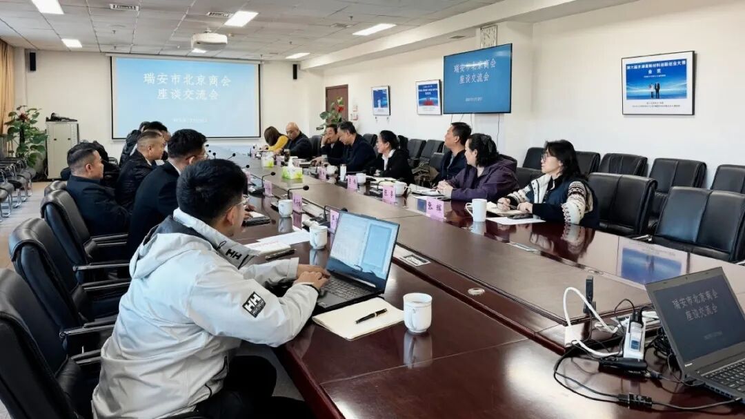瑞安市北京商会监事长蔡启平介绍了商会会员企业的构成与资源特色,涵盖制造、新材料研发、产业投资等多个领域,并表示将积极推介瑞安产业优势,促进双方资源对接。